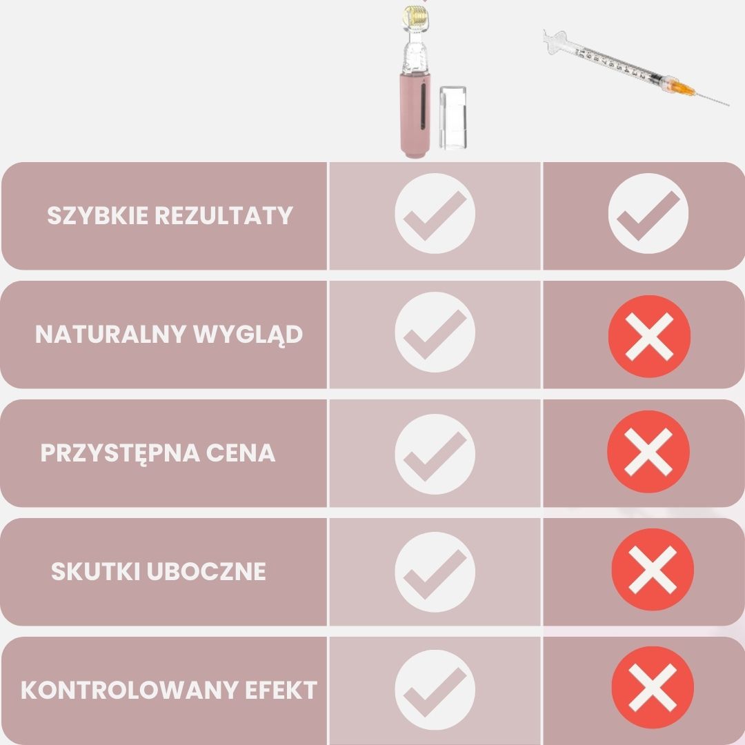 „Precyzyjne igły z tytanu delikatnie stymulują skórę ust, wspomagając naturalne procesy regeneracji.”